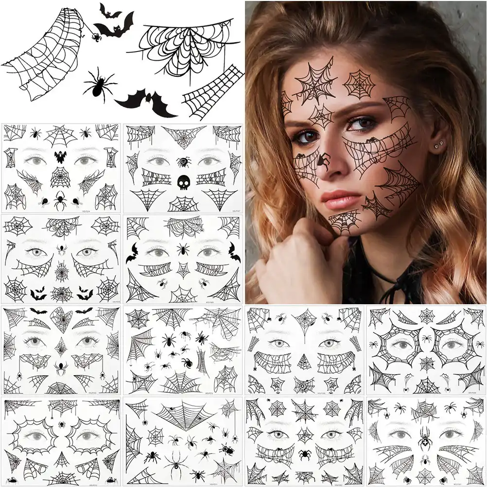 12 Stucke Halloween Spinne Gesicht Aufkleber Tattoo Aufkleber Wasserdicht Personlichkeit Temporare Tattoo Maskerade Lustige Tattoo Aufkleber Temporary Tattoos Aliexpress