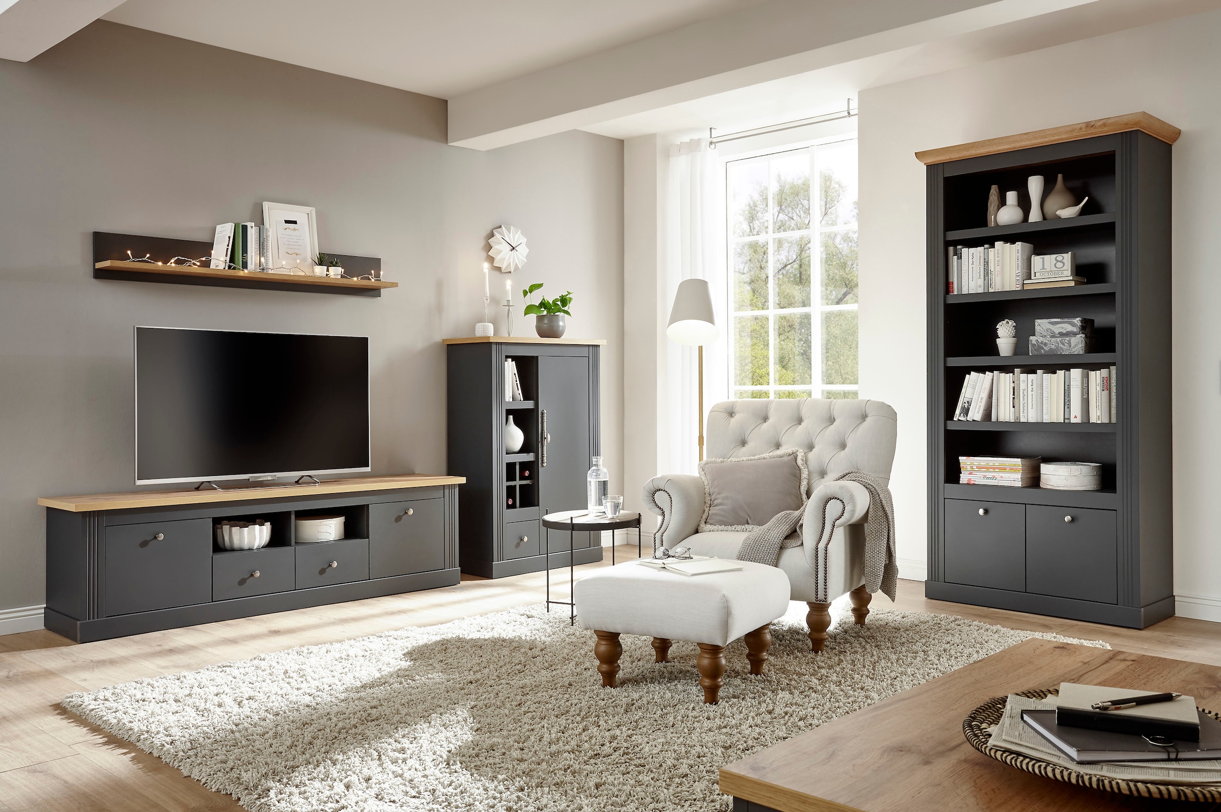 Stylefy Nidda Wohnzimmerset Monument Eiche Weiß. Die Möbel zeichnen sich durch Handwerkskunst zeitlose Verzierungen und Holz aus. Wohnwand online bestellen XXXLutzde Von Anbauwänden bis Hängeelementen 1000 Varianten Optionale Beleuchtung Schnell günstig kaufen.