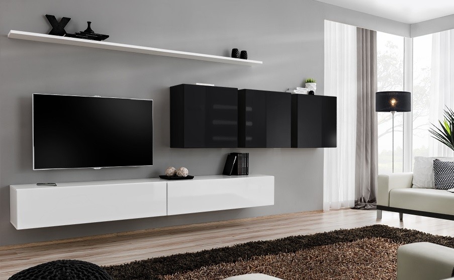 Wohnwand Otto Anbauwand Schrankwand Hangewohnwand Tv Board Hochglanz Set Mobelset Wohnzimmerset Weiss Schwarz 21 Mobelwelten24