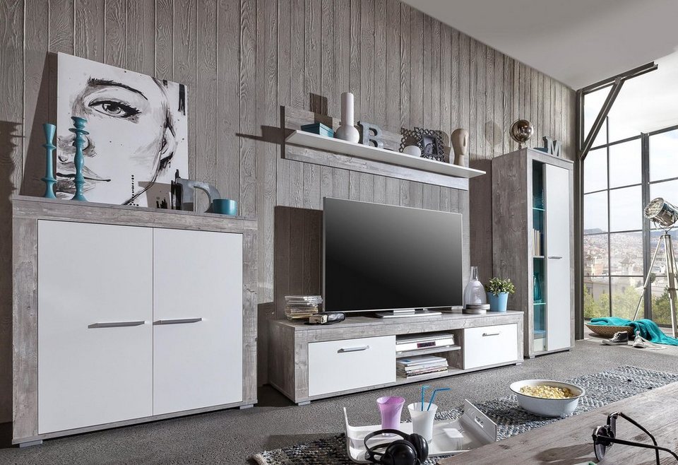 Jumek Wohnwand Fjord Kiefer Weiss Grau Mobel Letz Ihr Online Shop