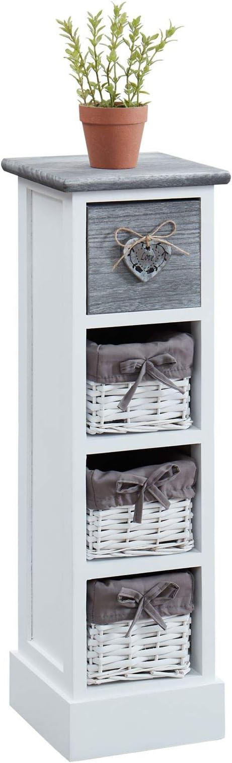 Caro Mobel Blumenregal Flower Schubladenregal Standregal In Weiss Shabby Chic Vintage Look Mit Dekorativer Schublade Und 3 Korben Amazon De Kuche Haushalt