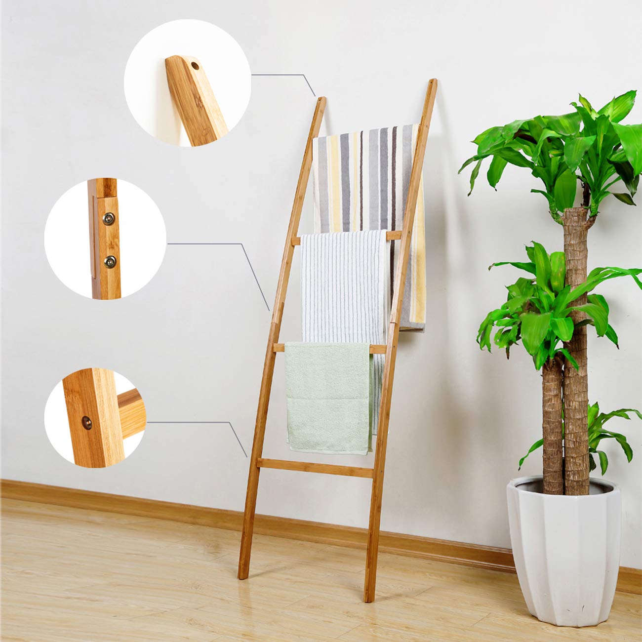 Zri Bamboo Handtuchleiter Handtuchstander Leiter Handtuchhalter Regal Mit 4 Stangen Super Eleganter Kleiderstander Fur Badezimmer Wohnzimmer Bambus Natur Braun Braun Amazon De Baumarkt