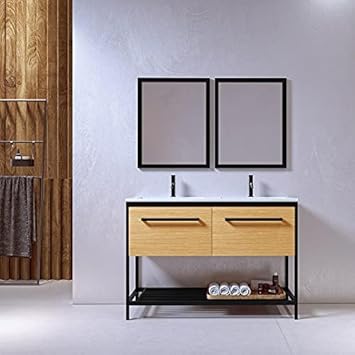 Badmobel Smart 120 Cm Aus Metall Schwarz Mit Doppeltem Waschtisch Weiss Amazon De Baumarkt
