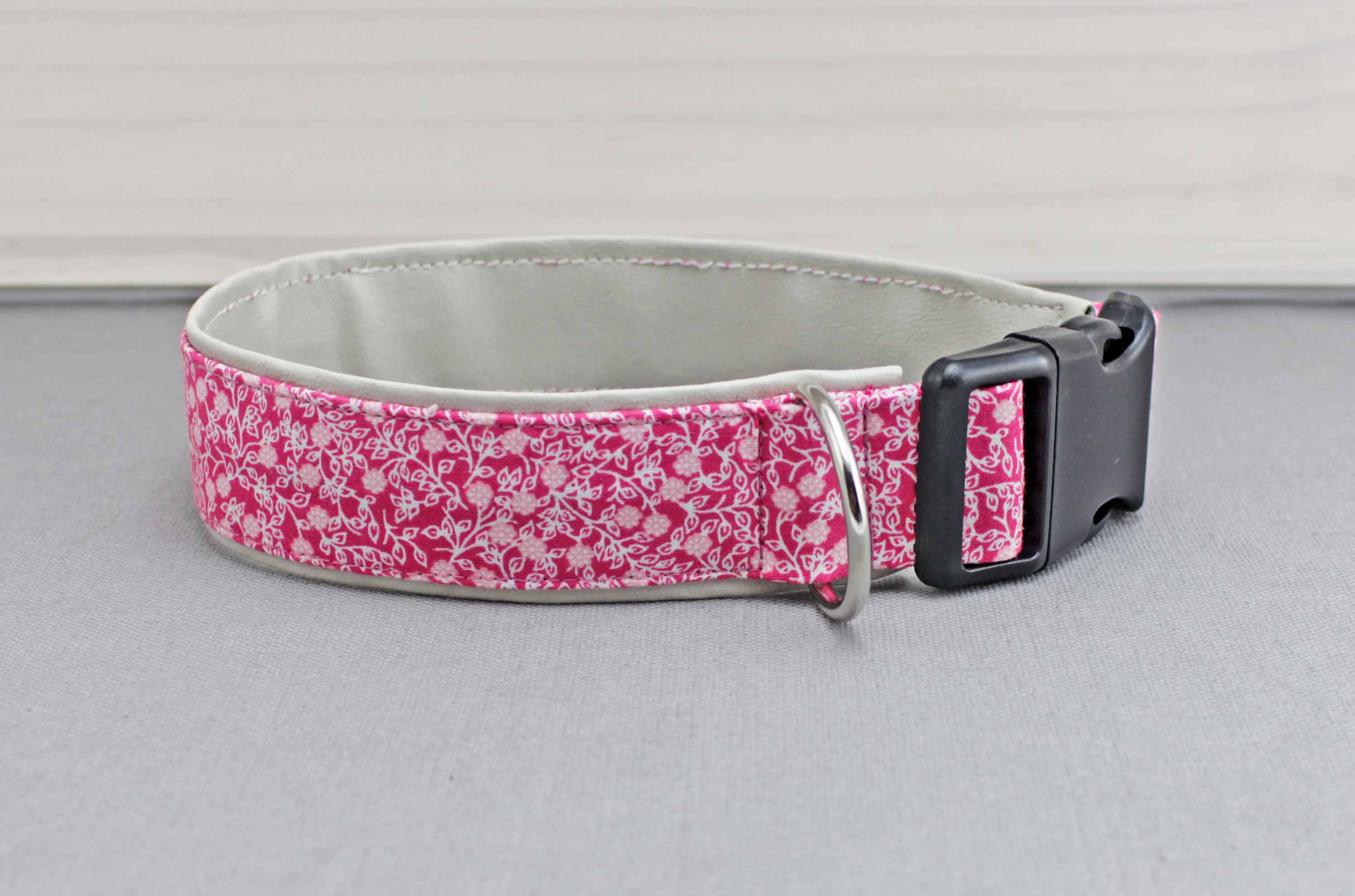 Threequarters Hundehalsband Mit Blumen In Rosa Und Weiss Kunstleder In Hellgrau