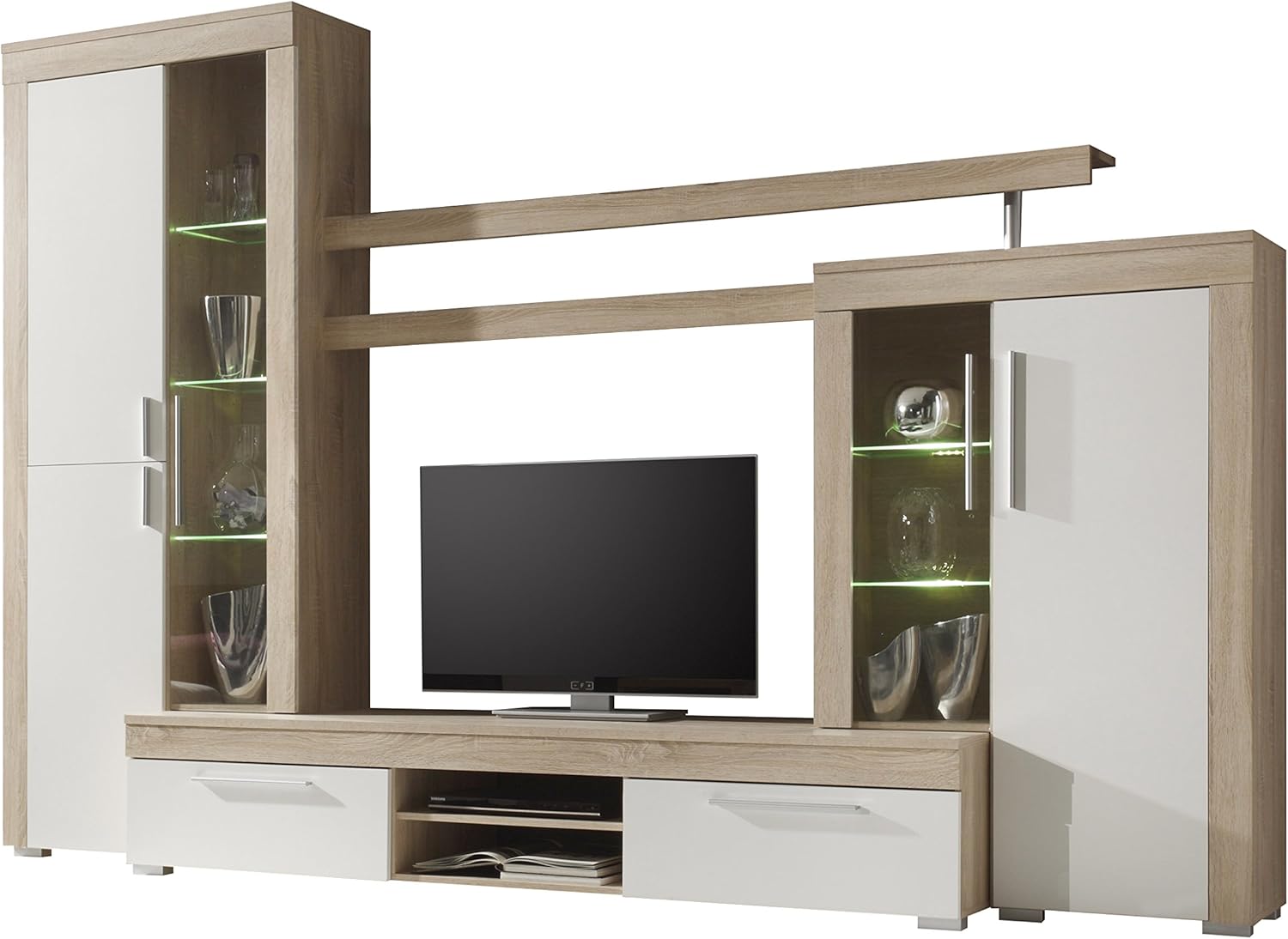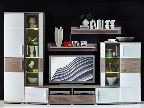 Moderne Wohnwand Wohnzimmerschrank Wohnzimmer Mobel 2 X Vitine Mit Led Led Beleuchtung Tv Schrank Kaffe Tisch Hange Regale Komode Sonoma Amazon De Kuche Haushalt