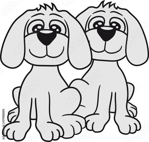 Team 2 Freunde Paar Bruder Welpe Sitzen Klein Kind Warten Gehorsam Lustig Hund Suss Niedlich Haustier Comic Cartoon Stock Illustration Adobe Stock