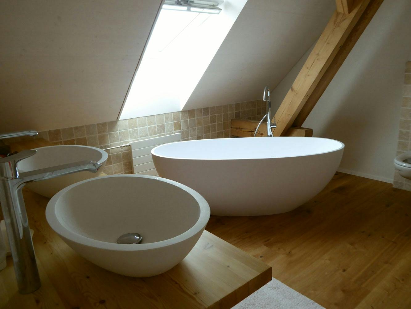 Badezimmer Dachschrage Badewanne Waschtisch Dach